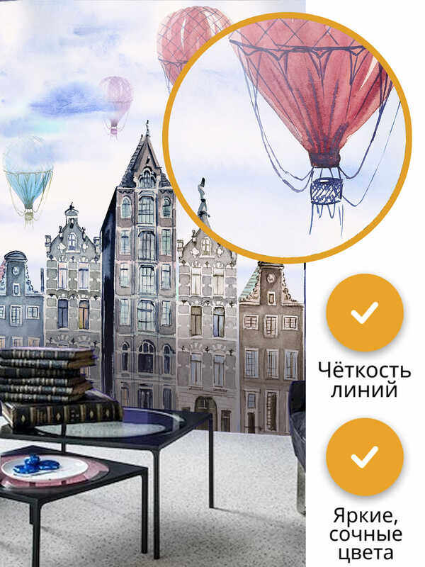 Фотообои на стену флизелиновые VEROL "Воздушные шары и город" 300х270 см, 8.1 м2, 3д фото обои моющиеся виниловые