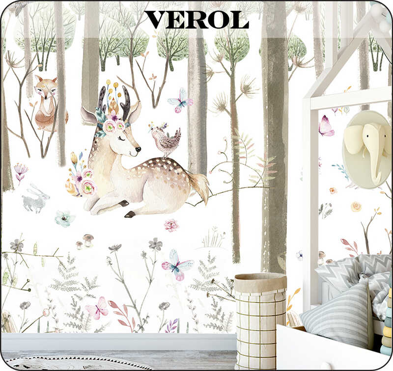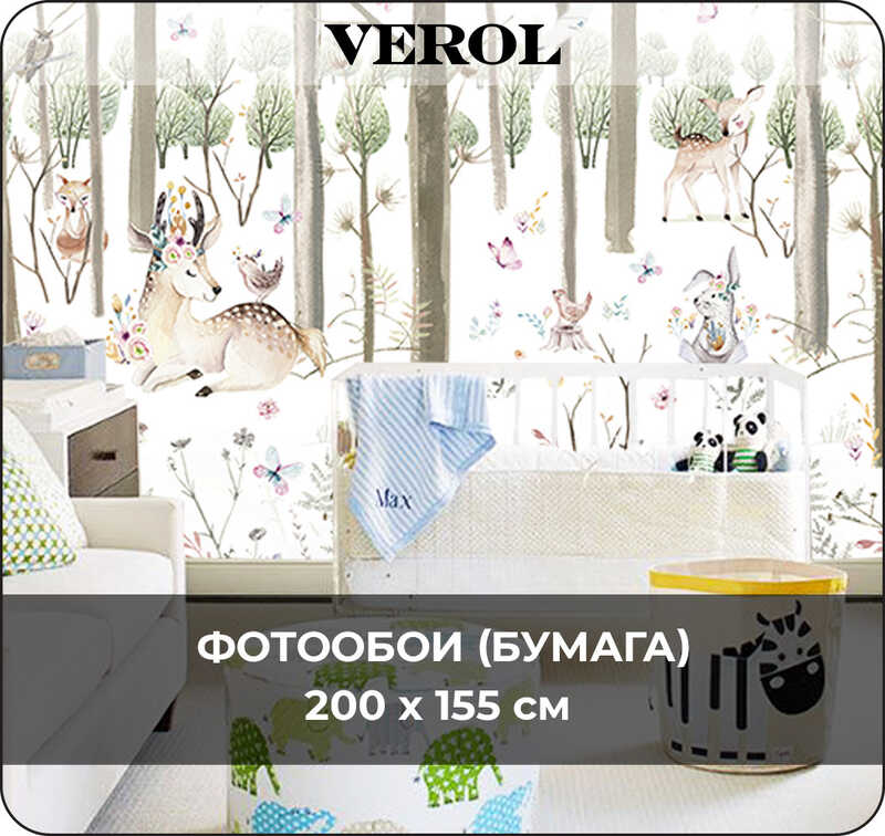Бумажные фотообои бесшовные VEROL "Звери в лесу" площадь 3,1 м2 ширина 200 см высота 155 см