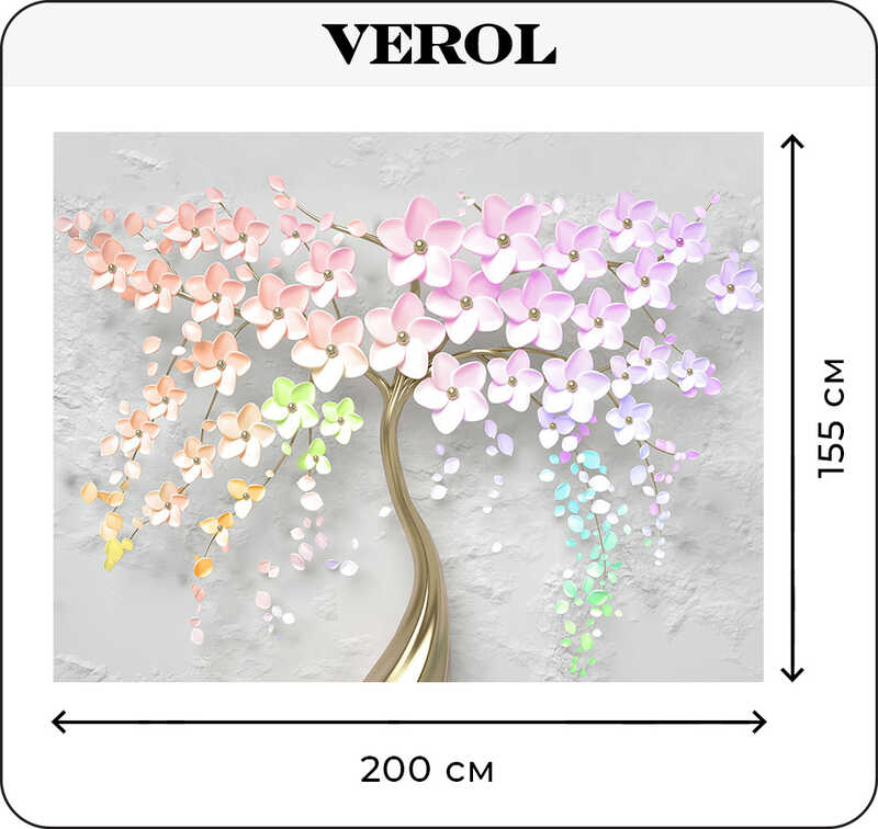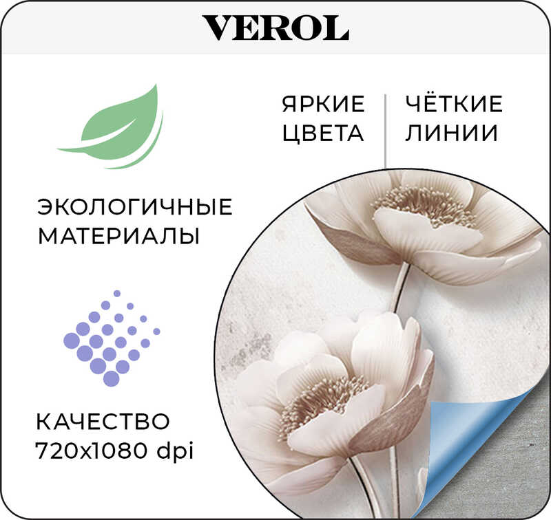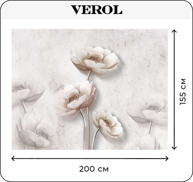 Бумажные фотообои бесшовные VEROL "Цветы 3D" 3,1 м2 ширина 200 см высота 155 см плотность 115 г/м