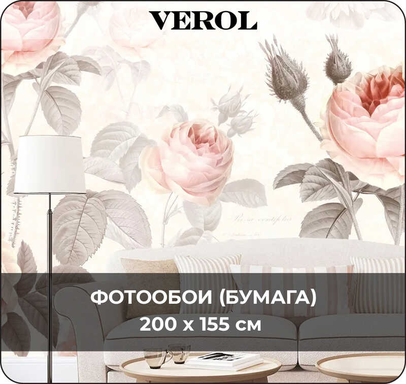 Бумажные фотообои бесшовные VEROL "Розы" 3,1 м2 ширина 200 см высота 155 см плотность 115 г/м