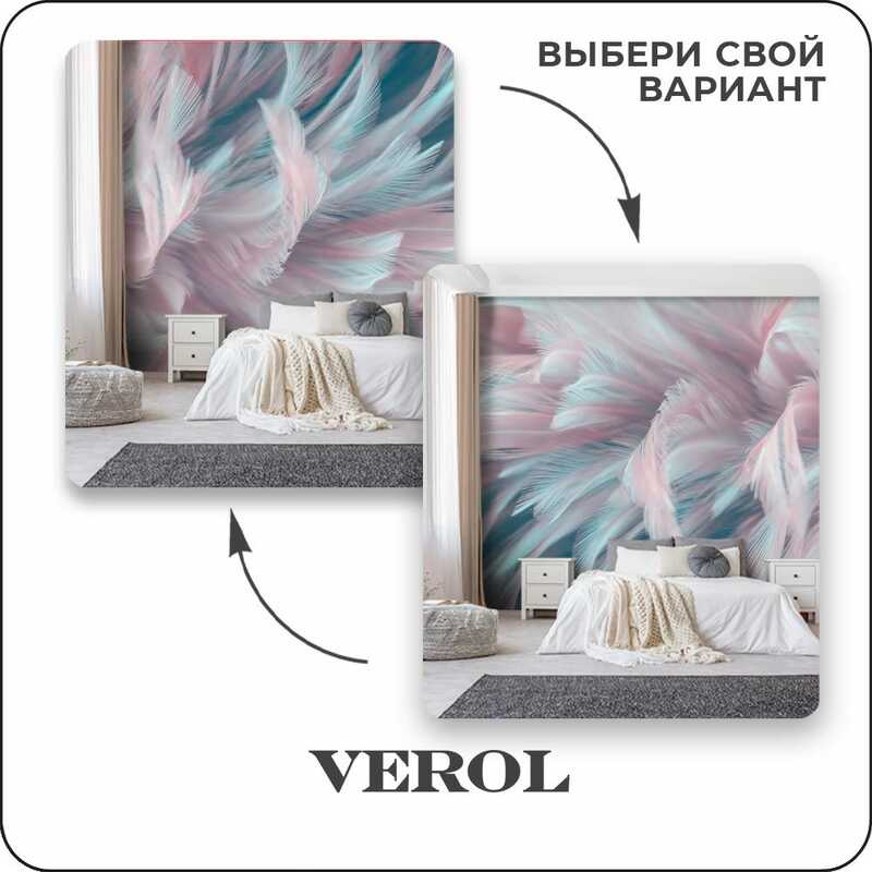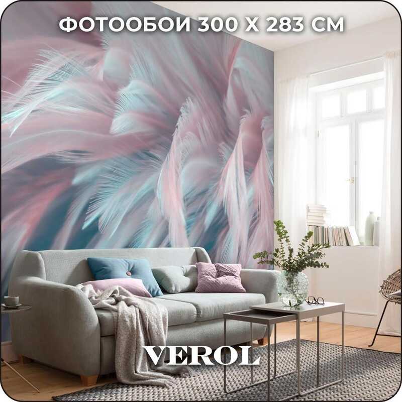 Фотообои на стену флизелиновые VEROL "Розовые перья" 300х283 см, 8.49 м2, 3д фото обои моющиеся виниловые