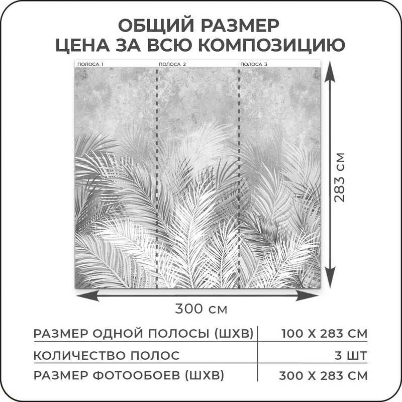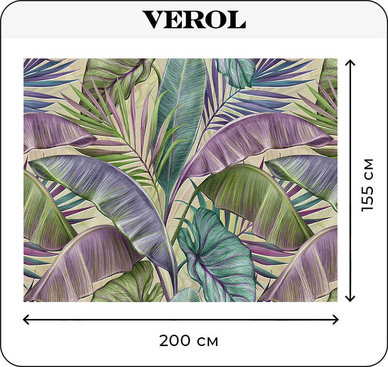 Бумажные фотообои бесшовные VEROL "Тропические листья" площадь 3,1 м2 ширина 200 см высота 155 см