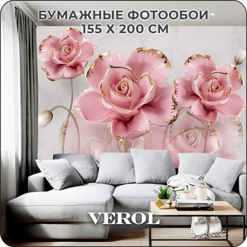 Фотообои на стену бумажные VEROL "Цветы" 200х155 см, 3.1 м2, 3д фото обои