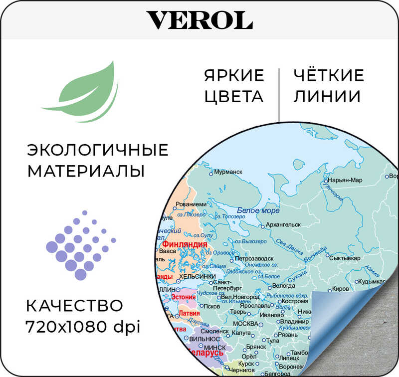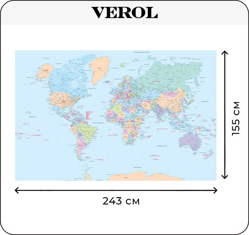 Фотообои бесшовные Verol "Карта мира, взрослая, подробная" 3,76 м2 ширина 243 см высота 155 см
