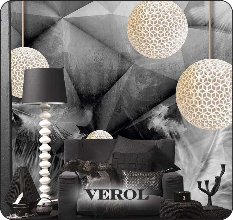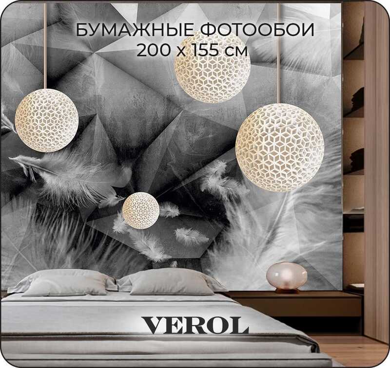 Фотообои на стену бумажные VEROL "Геометрия и перья 3D" 200х155 см, 3.1 м2, 3д фото обои