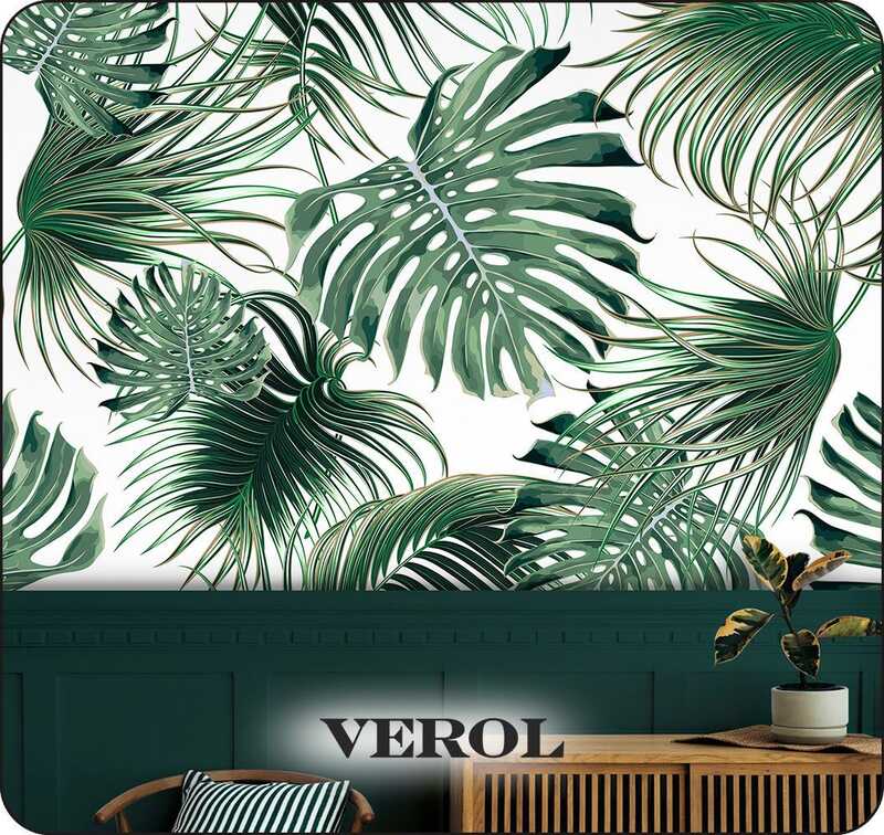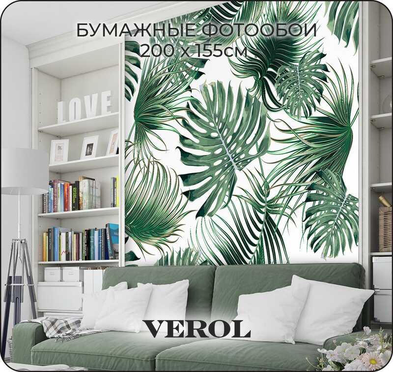 Фотообои на стену бумажные VEROL "Тропические листья" 200х155 см, 3.1 м2, 3д фото обои