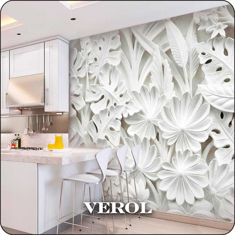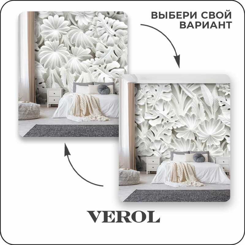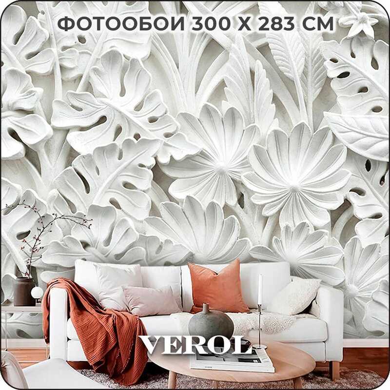 Фотообои на стену флизелиновые VEROL "Белые листья" 300х283 см, 8.49 м2, 3д фото обои моющиеся виниловые