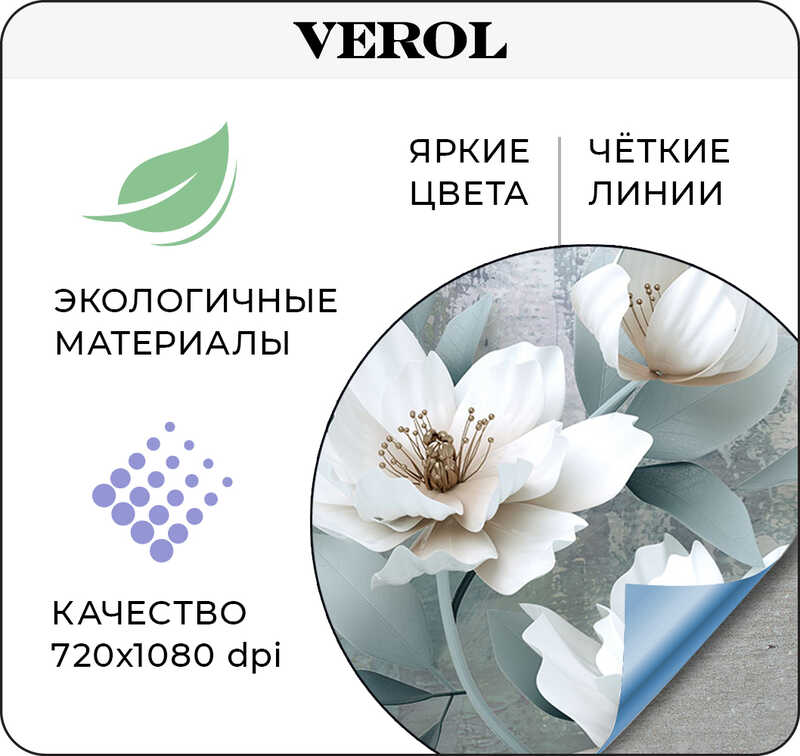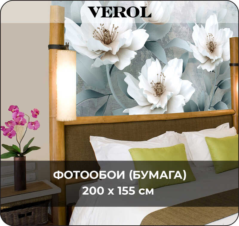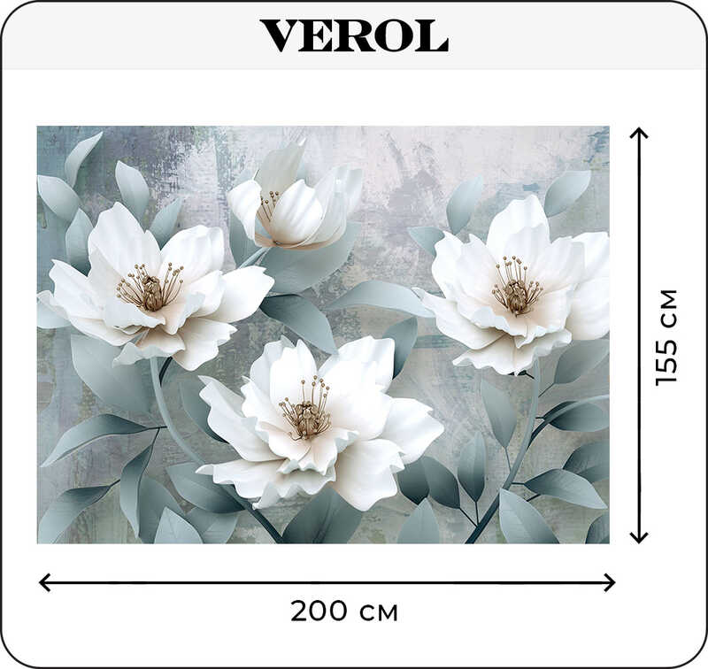 Бумажные фотообои бесшовные VEROL "Белые цветы" площадь 3,1 м2 ширина 200 см высота 155 см