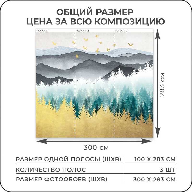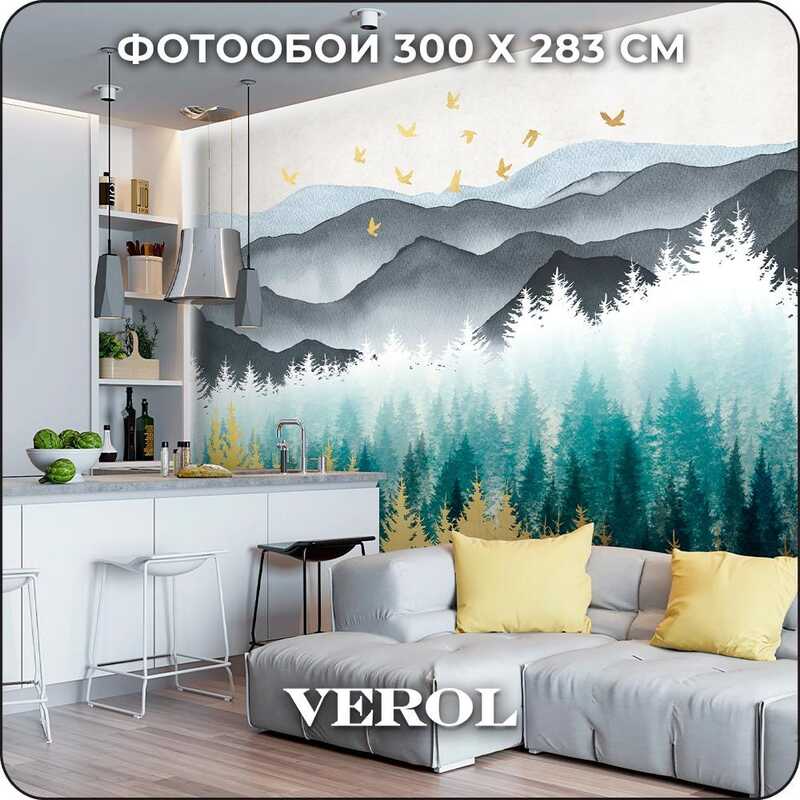 Фотообои на стену флизелиновые VEROL "Лес" 300х283 см, 8.49 м2, 3д фото обои моющиеся виниловые