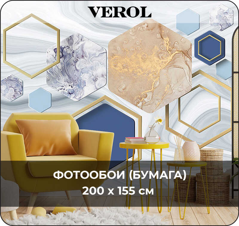 Фотообои бумажные бесшовные VEROL "Геометрия 3D" площадь 3,1 м2 ширина 200 см высота 155 см плотность 115 г/м