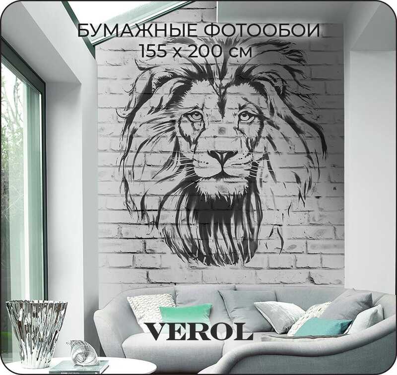 Фотообои на стену бумажные VEROL "Кирпичная стена и лев" 200х155 см, 3.1 м2, 3д фото обои