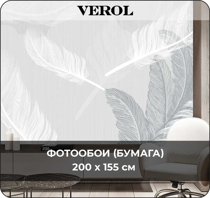 Бумажные фотообои бесшовные VEROL "Перья" площадь 3,1 м2 ширина 200 см высота 155 см плотность 115 г/м