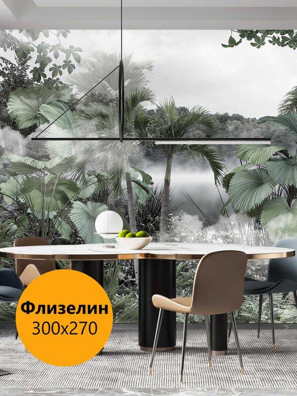 Фотообои на стену флизелиновые VEROL "Пальмы" 300х270 см, 8.1 м2, 3д фото обои для кухни моющиеся виниловые, в детскую, интерьерное покрытие 3d эффект в спальню, декор для дома