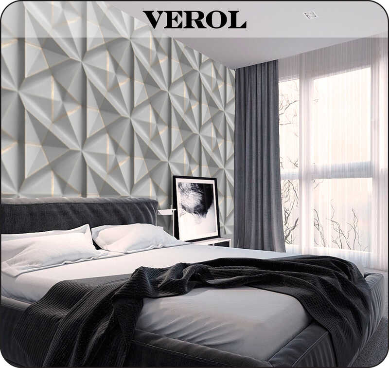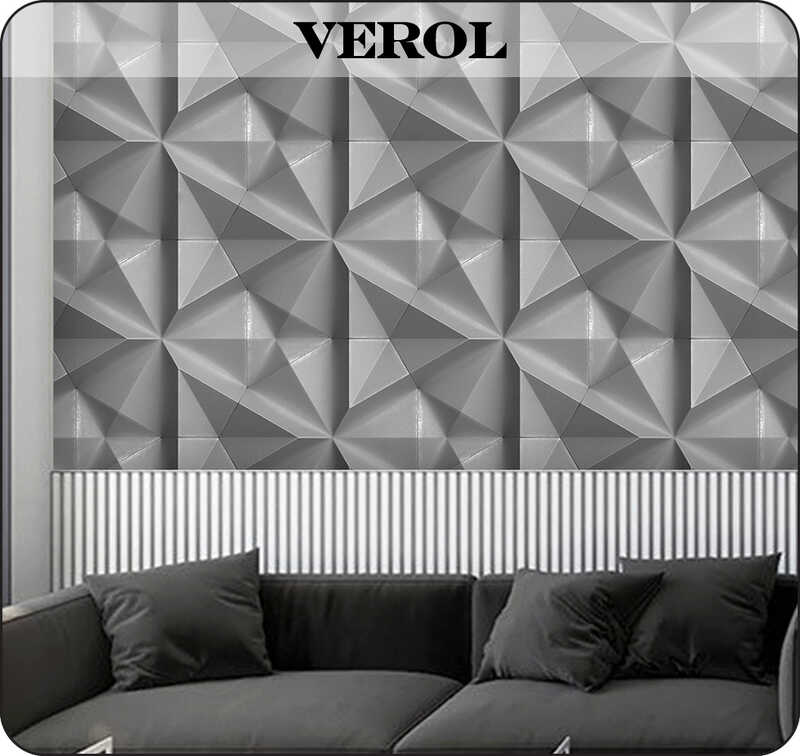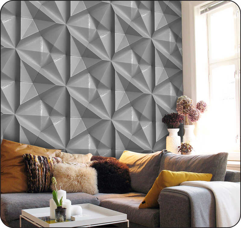 Бумажные фотообои бесшовные VEROL "3D треугольники" площадь 3,1 м2 ширина 200 см высота 155 см, обои на стену в гостиную, декор и интерьер для дома, отделка стен в детскую комнату, дизайн для кухни