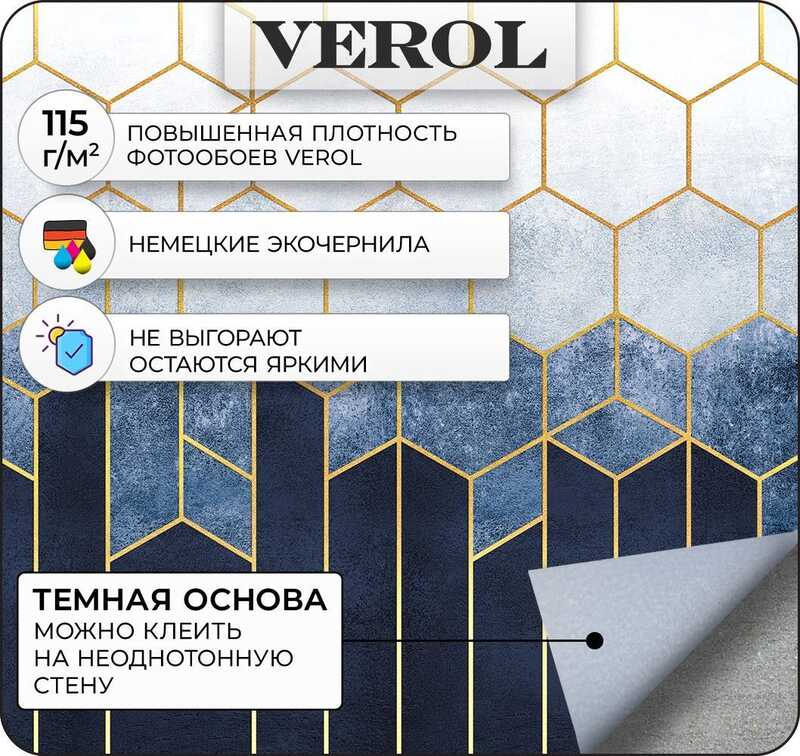 Фотообои на стену бумажные VEROL "Геометрия, шестиугольники" 200х155 см, 3.1 м2, 3д фото обои для кухни, в детскую комнату, интерьерное покрытие 3d эффект в спальню, декор для дома