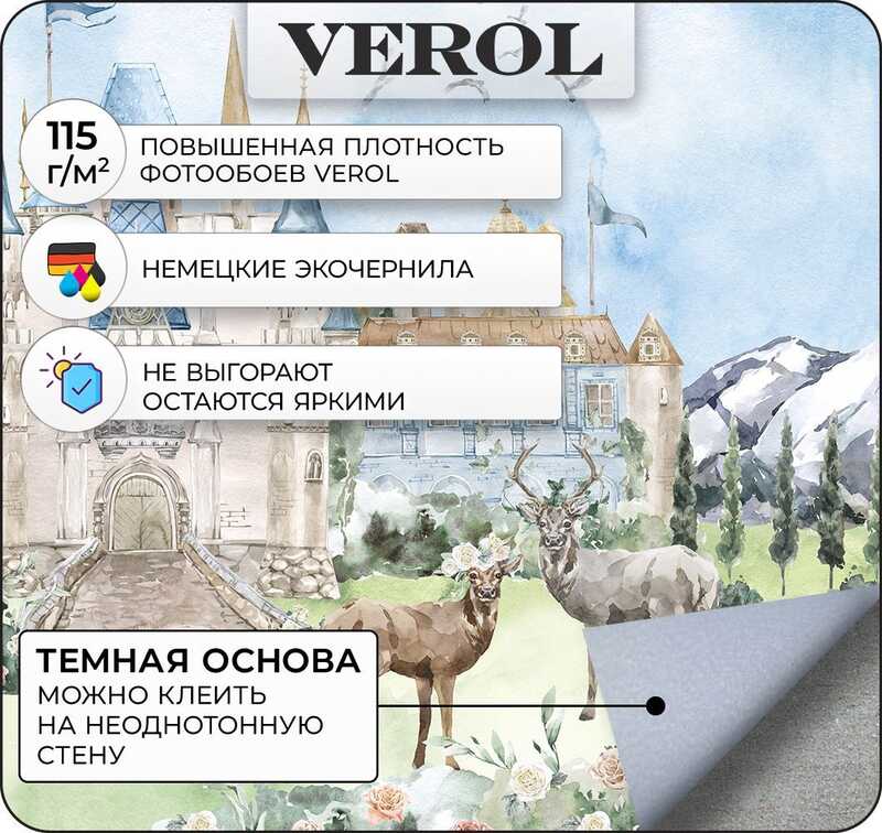 Фотообои на стену детские бумажные VEROL "Акварельный замок" 200х155 см, 3.1 м2, 3д фото обои для кухни, в детскую комнату, интерьерное покрытие 3d эффект в спальню, декор для дома