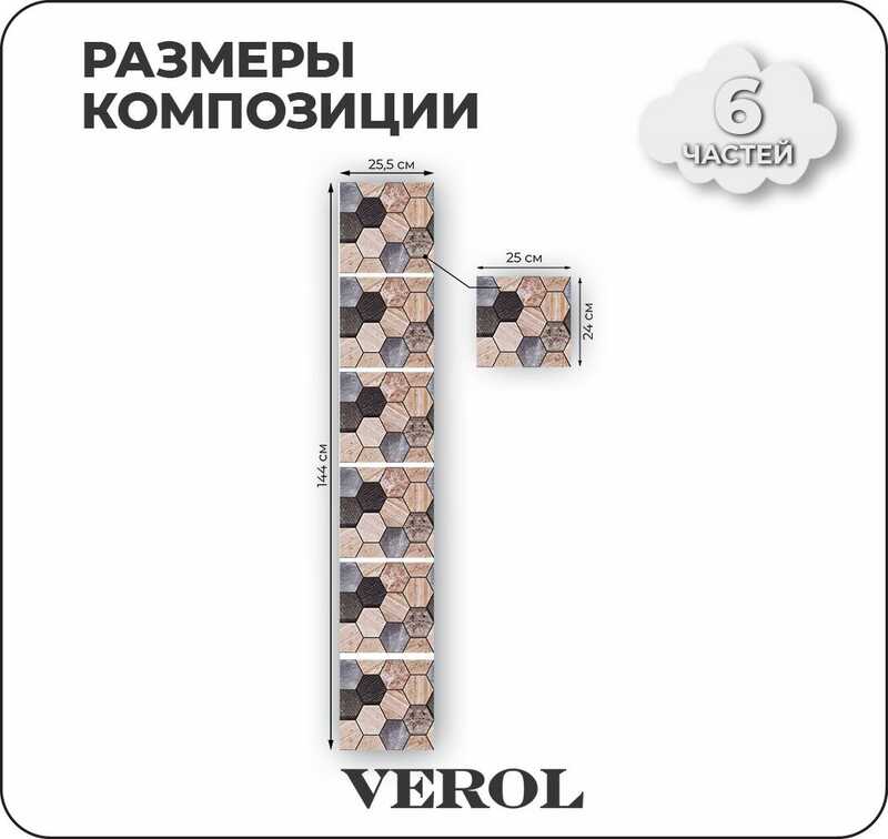 Интерьерные наклейки на стену для декора VEROL "Кухонный фартук" самоклеющаяся пленка, виниловые стикеры набор 6 шт
