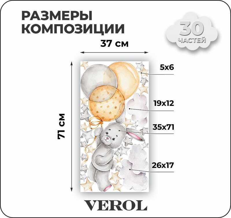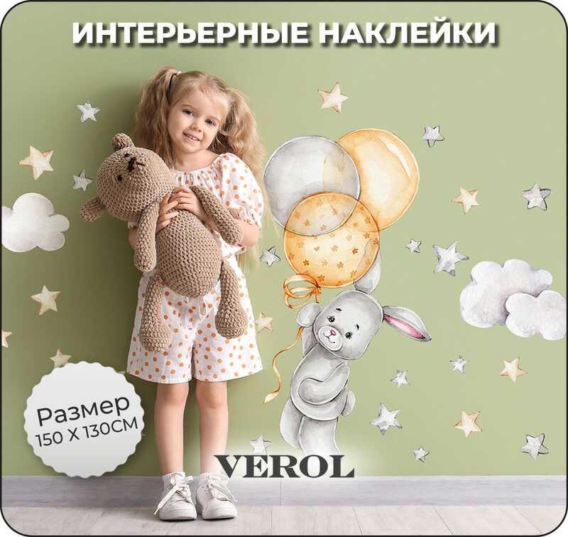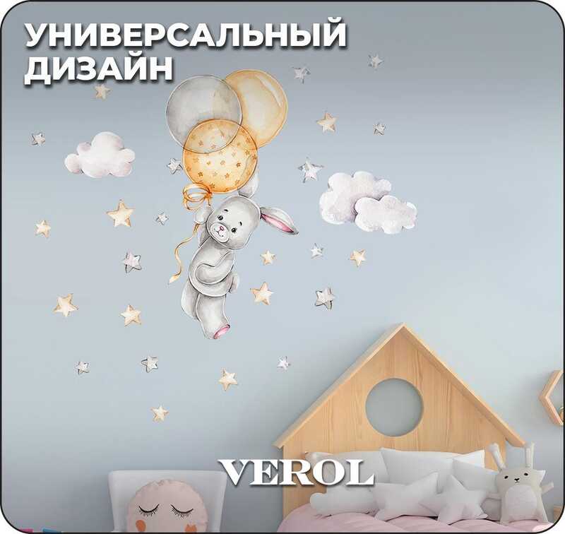 Наклейки для детей интерьерные VEROL "Зайка с шариками" на стену в детскую, самоклеющаяся пленка