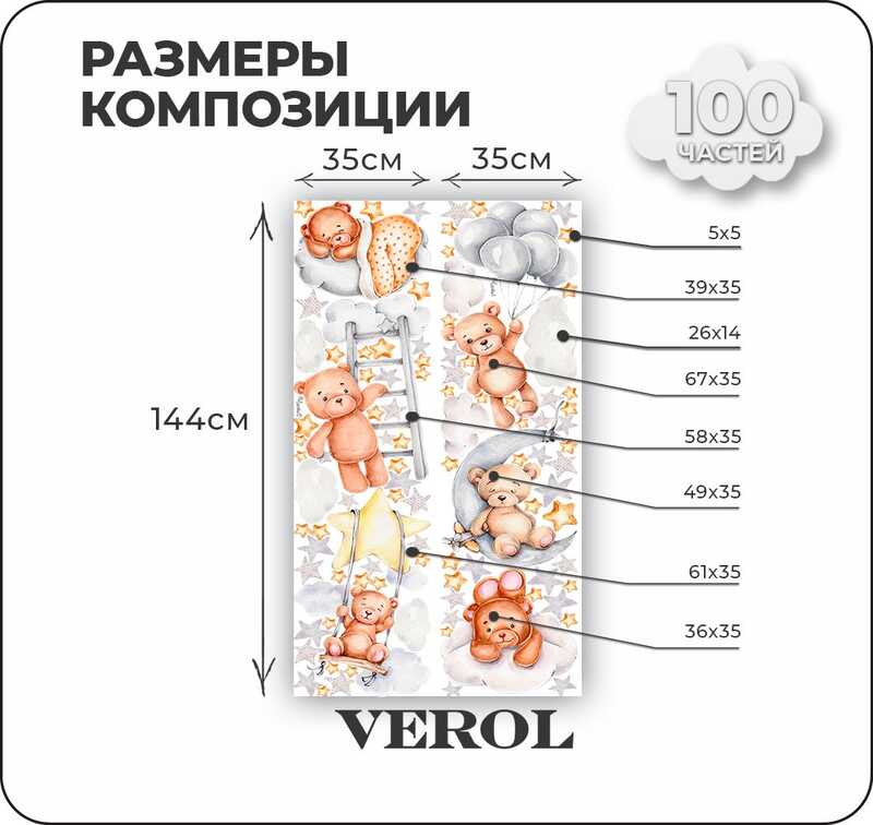 Наклейки для детей интерьерные VEROL "Милые мишки" на стену в детскую