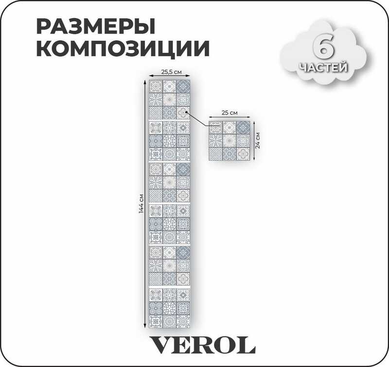 Интерьерные наклейки на стену для декора VEROL "Плитка на кухню", самоклеющаяся пленка
