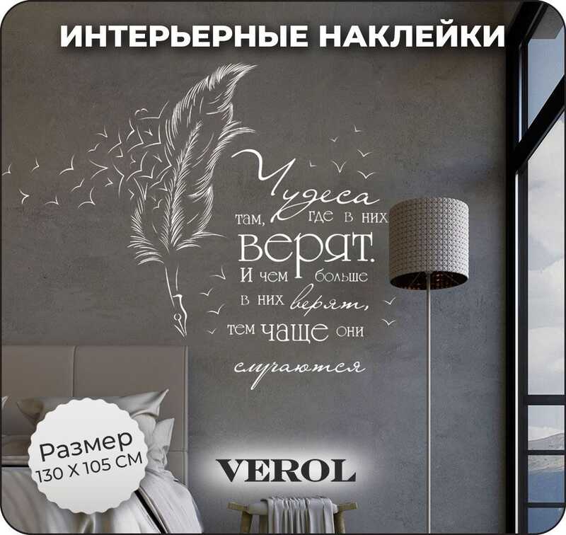Интерьерные наклейки на стену для декора VEROL "Перо" самоклеющаяся пленка, виниловые стикеры набор 77 шт