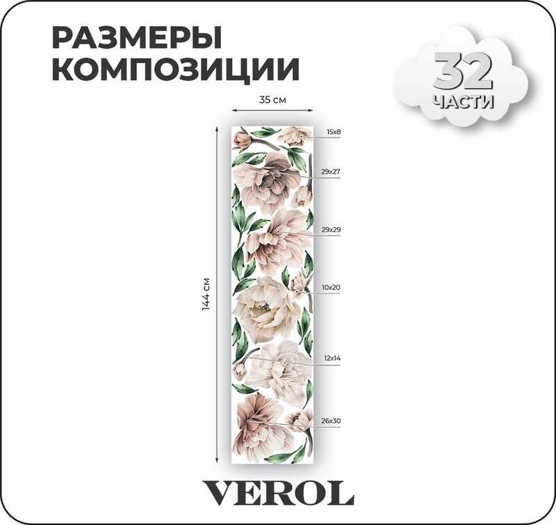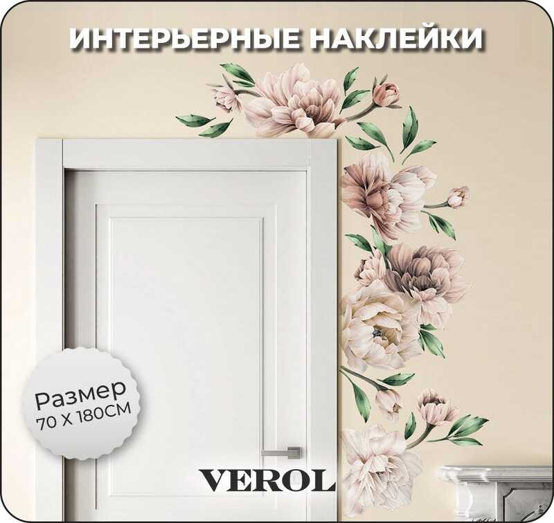 Интерьерные наклейки на стену для декора VEROL "Бежевые пионы" самоклеющаяся пленка, виниловые стикеры, набор 32 шт.