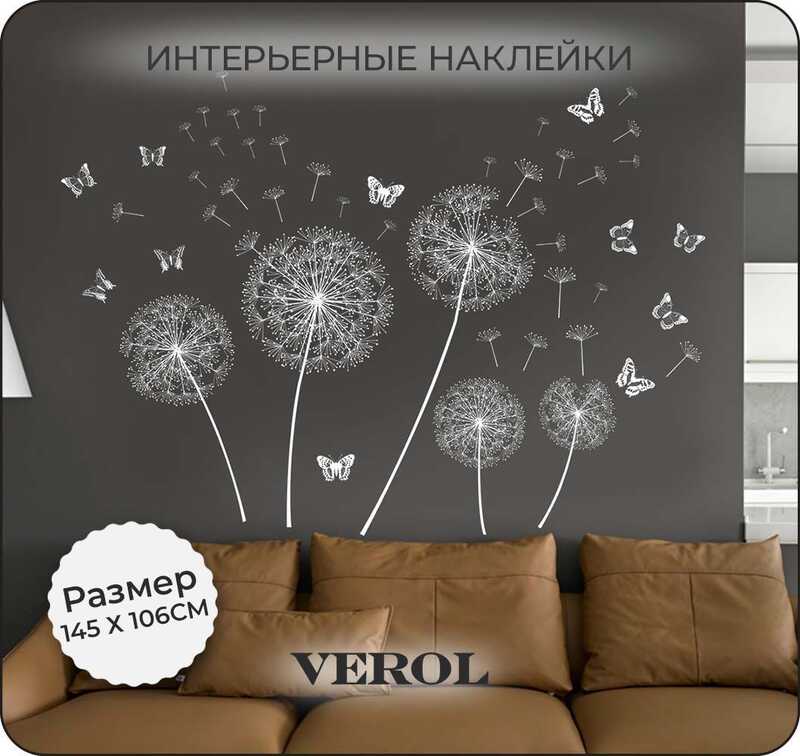 Наклейки на стену для декора VEROL "Одуванчики черные"