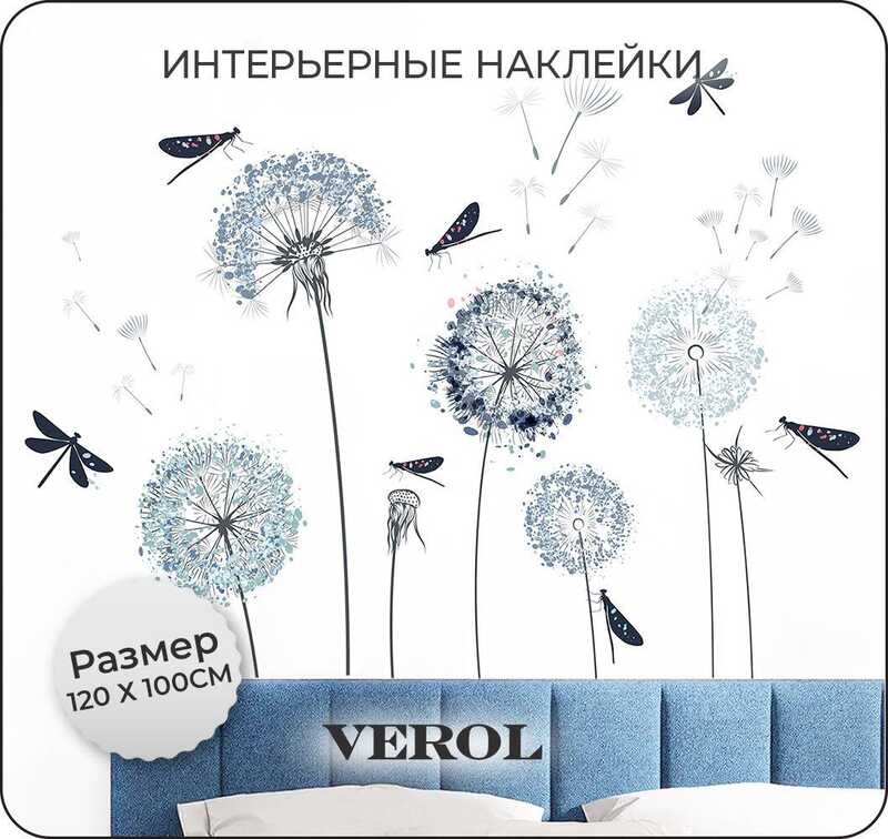 Интерьерные наклейки на стену для декора VEROL "Одуванчики" самоклеющаяся пленка, , виниловые стикеры набор 42 шт