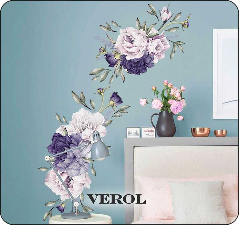Интерьерные наклейки на стену для декора VEROL "Фиолетовые пионы" самоклеющаяся пленка, виниловые стикеры, набор 50 шт
