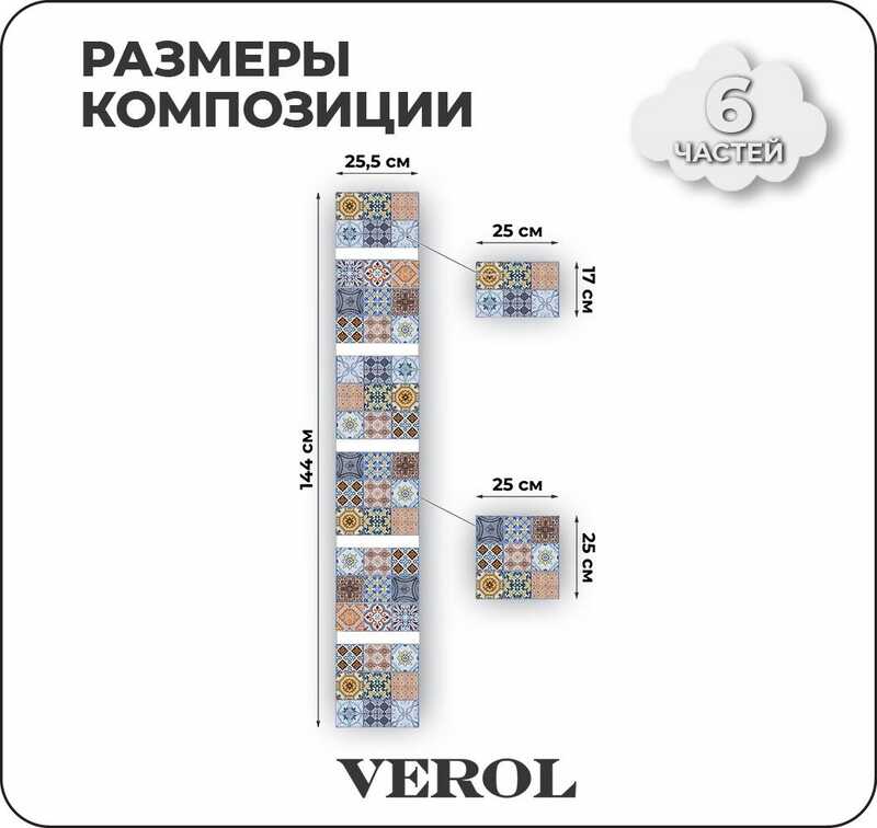 Интерьерные наклейки на стену для декора VEROL "Мозаика", самоклеющаяся пленка, виниловые стикеры, набор 6 шт