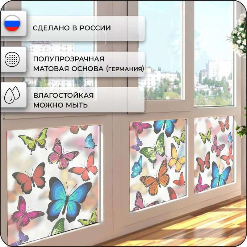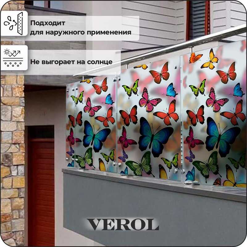 Витражная пленка для окон солнцезащитная VEROL "Бабочки" самоклеющаяся матовая декоративная с узором, 1 рулон 75х152 см