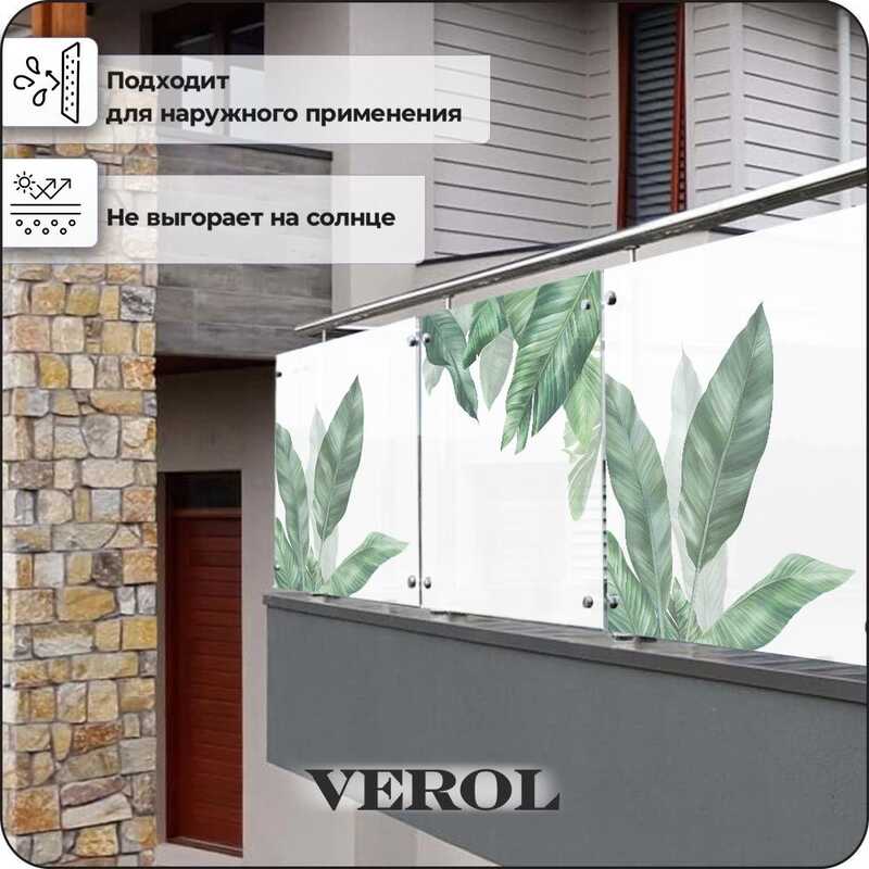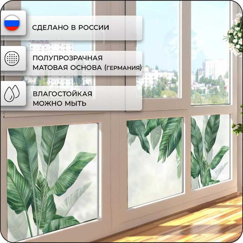 Витражная пленка для окон солнцезащитная VEROL "Листья банана" самоклеющаяся матовая декоративная с узором, набор 2шт по 75х152см