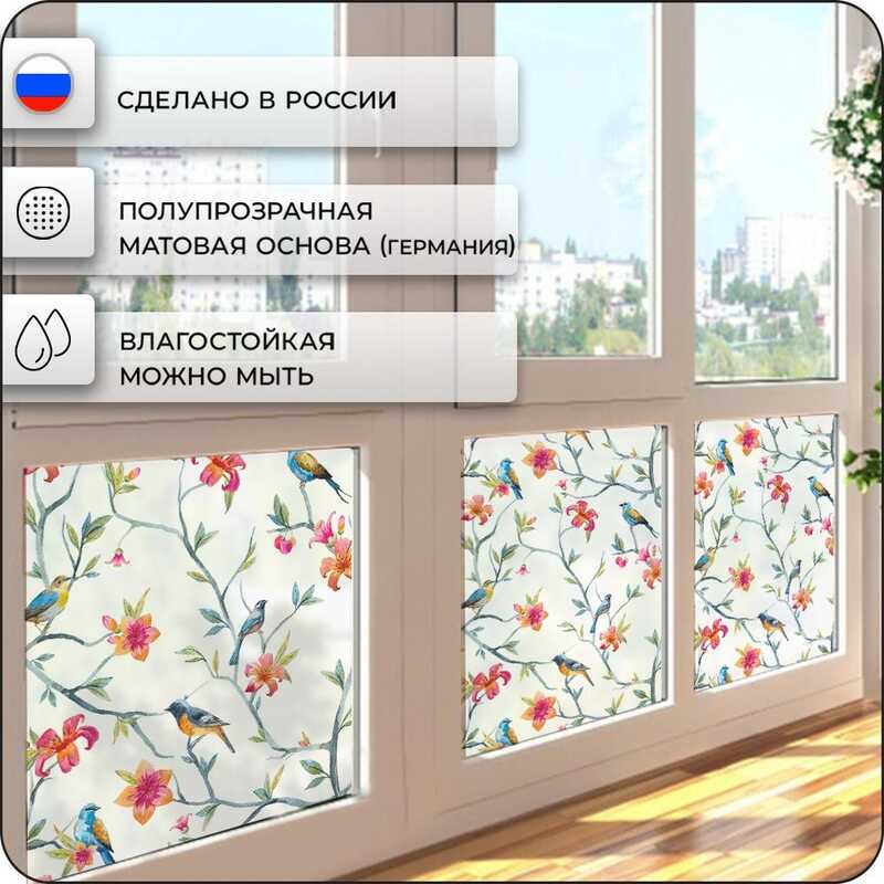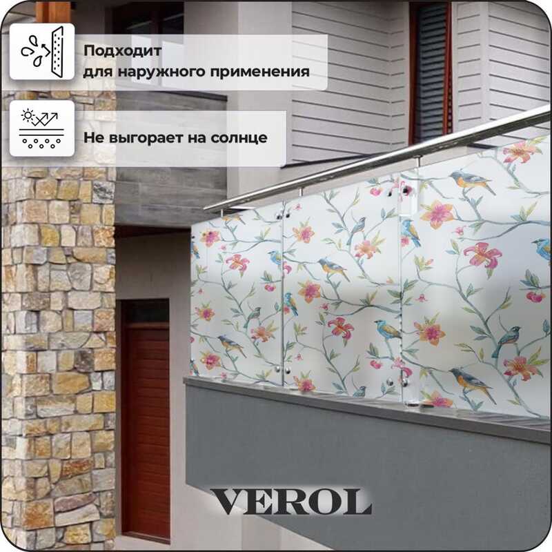 Витражная пленка для окон солнцезащитная VEROL "Птицы" самоклеющаяся матовая декоративная с узором, 1 рулон 75х152 см