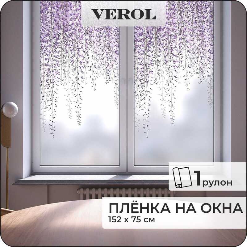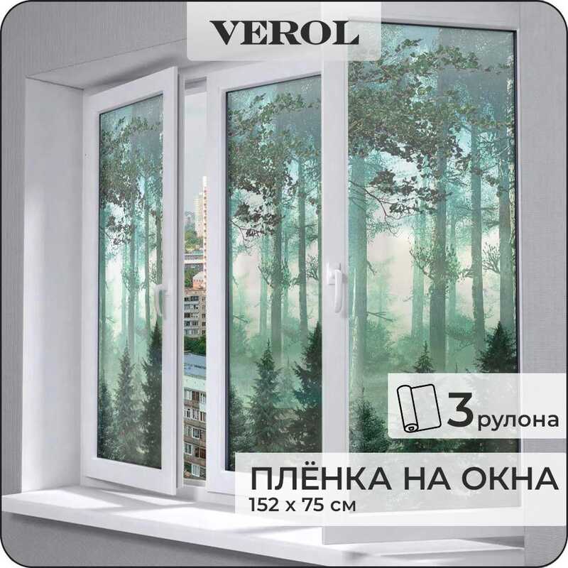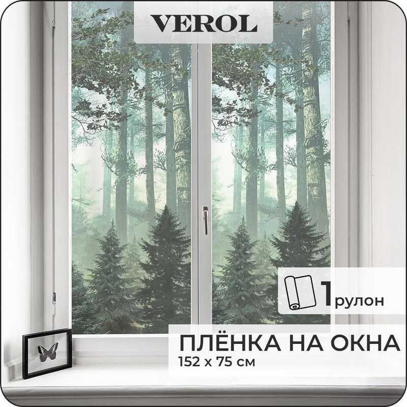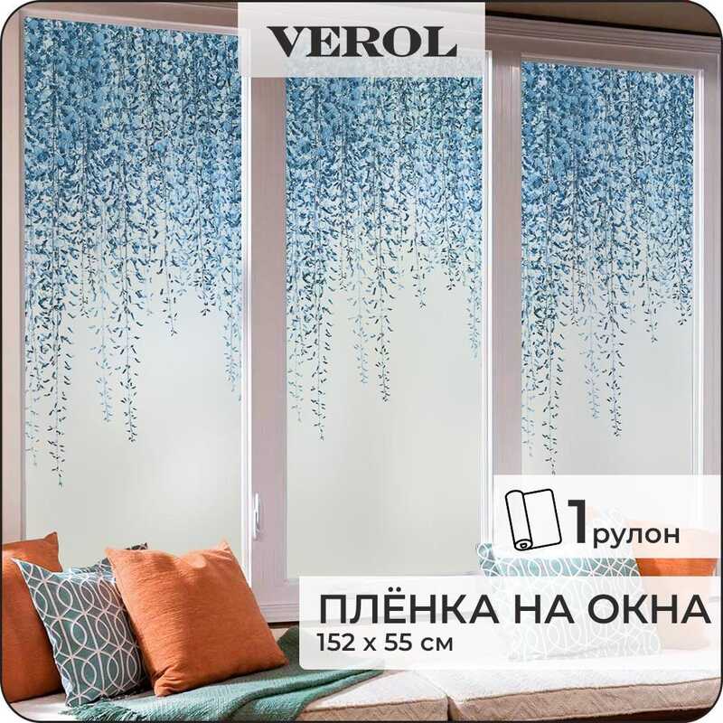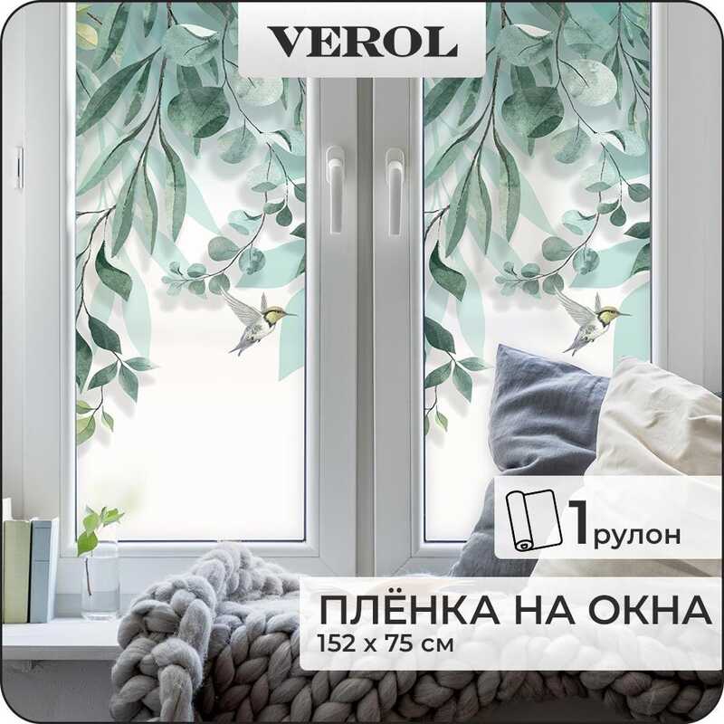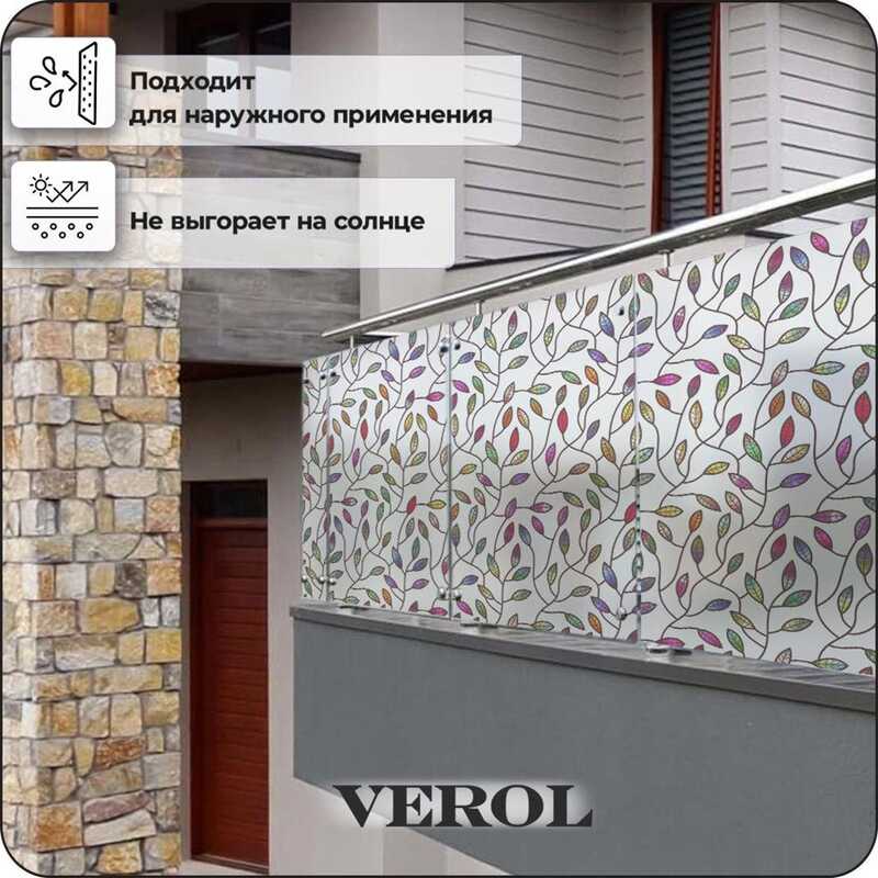 Витражная пленка для окон солнцезащитная VEROL "Витражные листья" самоклеющаяся матовая декоративная с узором, 1 рулон 75х152 см