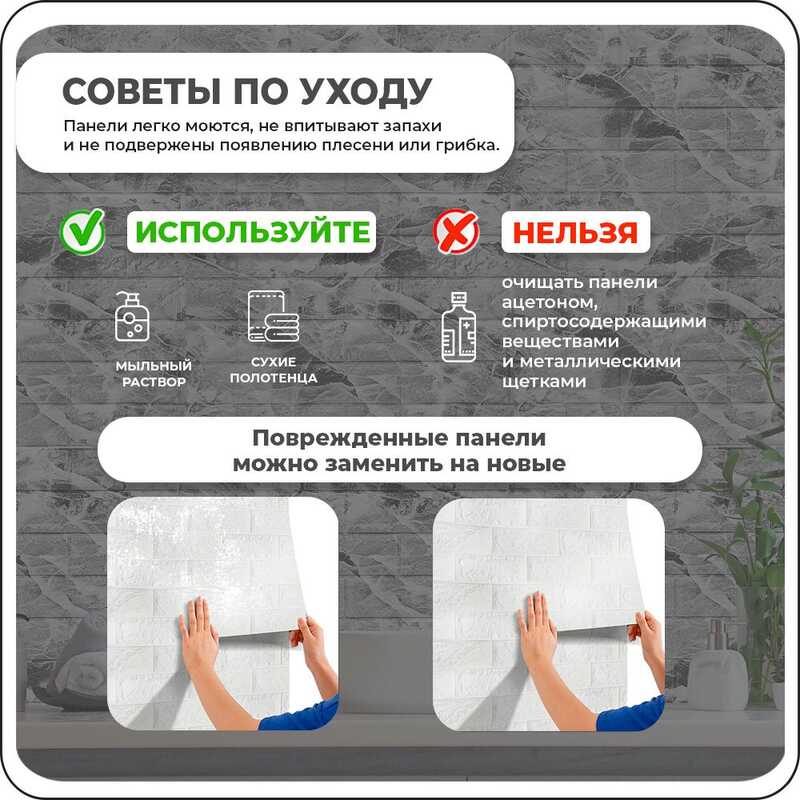 Процесс поклейки займет считанные минуты и не потребует особых навыков и усилий. Справиться с ним могут взрослые и дети. - Толщина панели 4 мм.